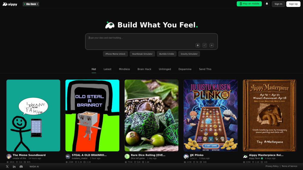 AI-powered interactive platform for creating games and digital art without coding.