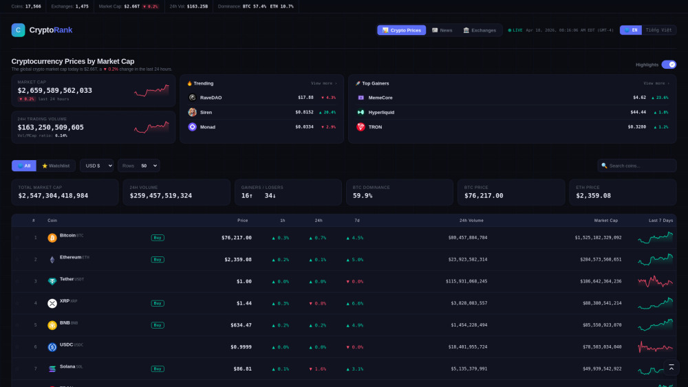 Real-time cryptocurrency market data, price tracking, and professional analytics platform.