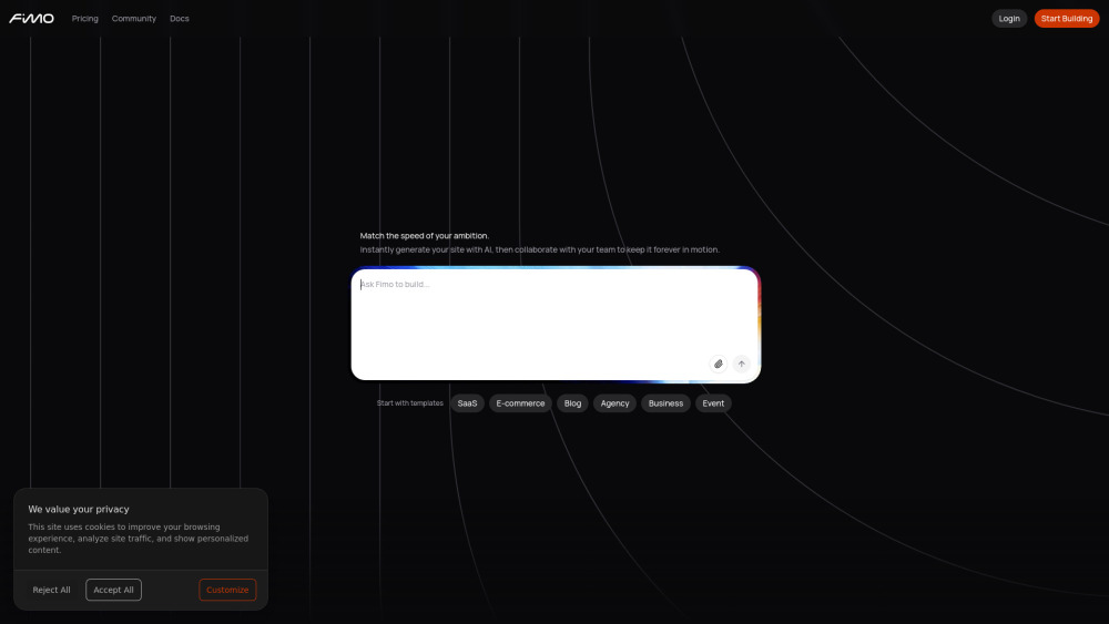 Fimo is an intuitive AI builder that empowers teams to quickly craft stunning multi-page websites with a motion-first design. Perfect for agencies, E-commerce businesses, or blogs, it simplifies the process from instant site generation to collaborative editing. With a built-in CMS and automated publishing, Fimo solves the hassle of web development by enabling users to create high-quality sites in mere minutes.