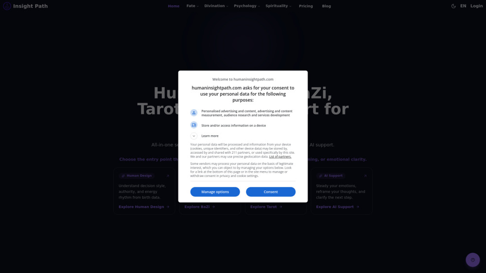 All-in-one AI platform for Human Design, BaZi, Tarot, and emotional self-discovery.