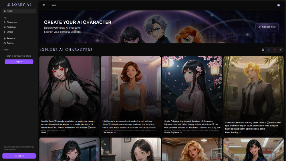An immersive platform for creating and roleplaying with custom, lifelike AI characters.