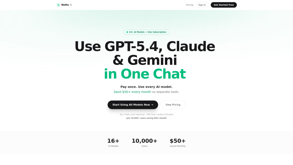 Unified AI chat platform accessing 16+ premium models like GPT-5.4 and Claude under one subscription.