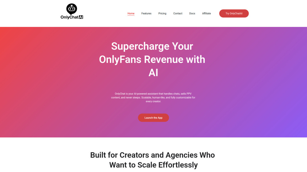 OnlyChatAI is a game-changing virtual assistant for OnlyFans creators looking to boost engagement and sales. It automates fan interactions and simplifies PPV content sales, allowing creators and agencies to focus on what they do best. With tailored scripts and 24/7 availability, it's perfect for those wanting to enhance their operation seamlessly while maintaining a personal touch.