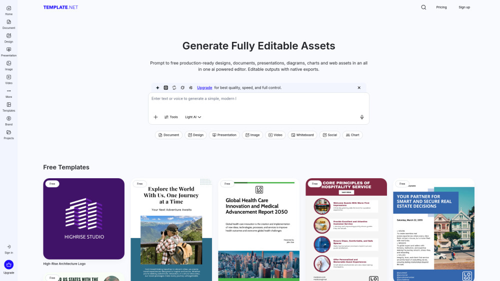 Template.net is a game-changer for anyone needing branded documents or professional assets quickly. This AI-driven tool transforms your simple text prompts into customizable, layered designs—be it for presentations, reports, or social media posts. Perfect for marketers, educators, and creatives, it saves time and ensures your assets are production-ready and easily exportable. Say goodbye to static templates!