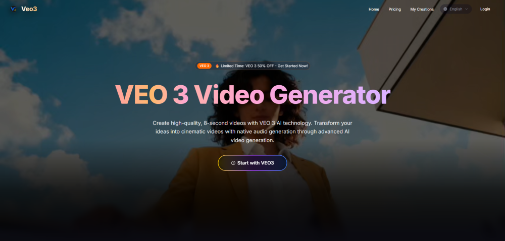 AI generator for high-quality 8-second cinematic videos with integrated native audio and lip-syncing.